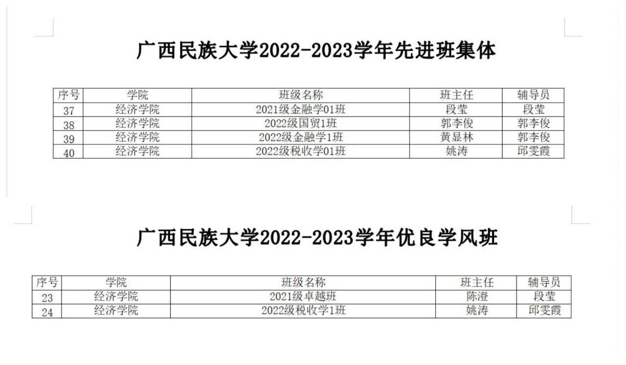 365英国上市官网六个班级荣获“广西民族大学2022-2023学年先进集体和优良学风班级”的称号