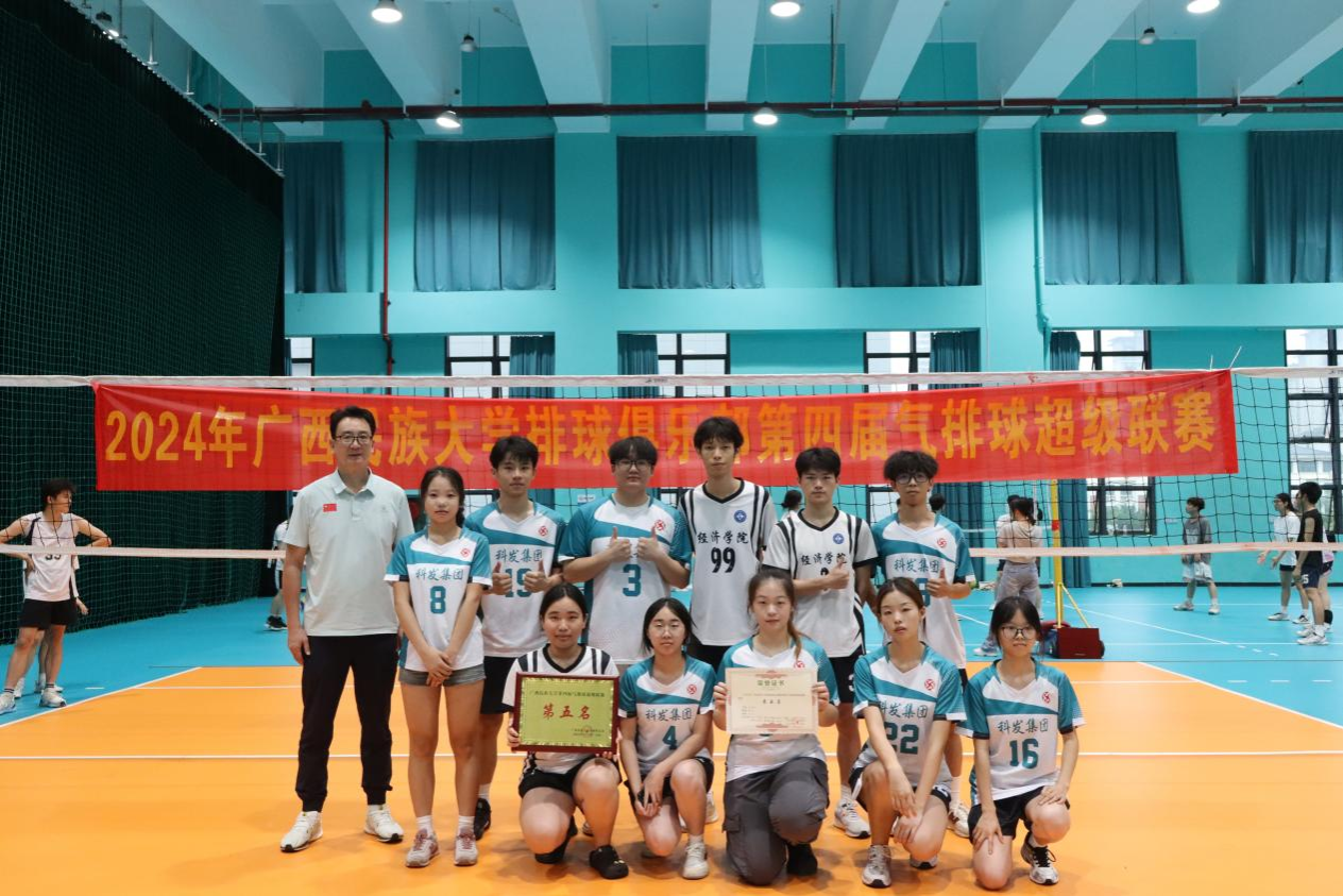5月18至19日在思源湖校区大学生活动中心举行的广西民族大学第四届气排球超级联赛中,我校各学院球队间进行了精彩的角逐。其中,365英国上市官网气排球队伍表现出色,荣获第五名佳绩。
