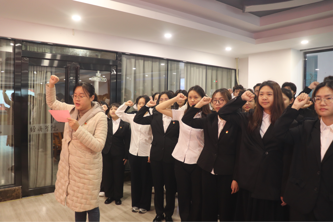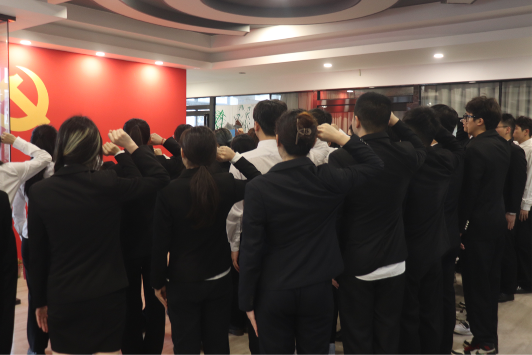 在段莹的领誓下,全体同志佩戴党员徽章,面对党旗,右手握拳,庄严宣誓。新党员代表欧燕玲表示,将以实际行动切实做到为党旗增辉添彩。老党员代表吴祎蓉强调,新党员要发挥先锋模范作用,保持初心。范潇潇指出,新党员要始终恪守先锋模范作用与青年责任担当相统一,个人理想追求与党和国家事业发展相统一,要求全体同志规范自己的行为,严格要求自己。