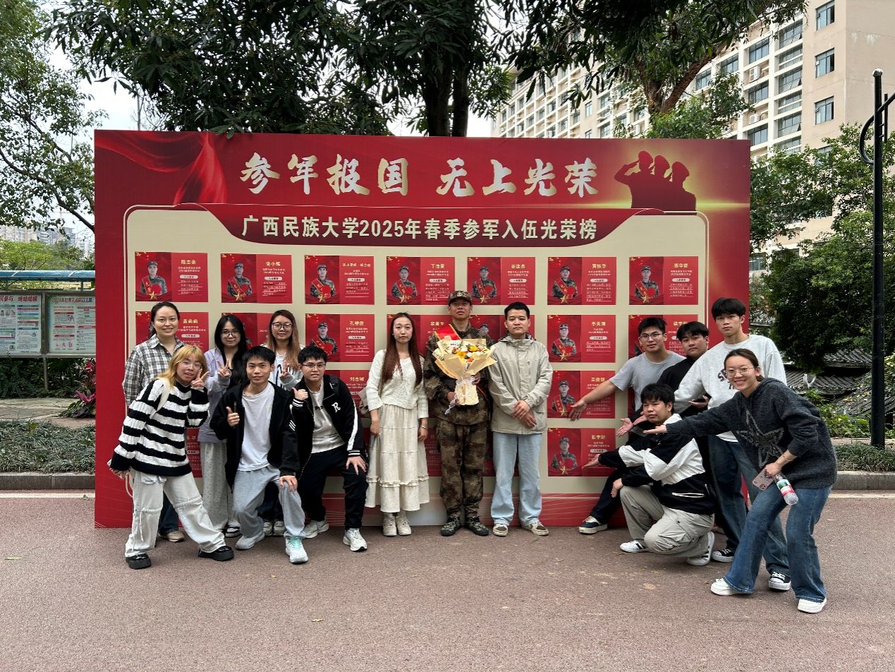 2025年3月12日下午,广西民族大学2025年春季大学生参军入伍仪式在相思湖校区大学生活动中心101室顺利举行。经济学院2023级数字经济2班张宇财同学光荣参军。