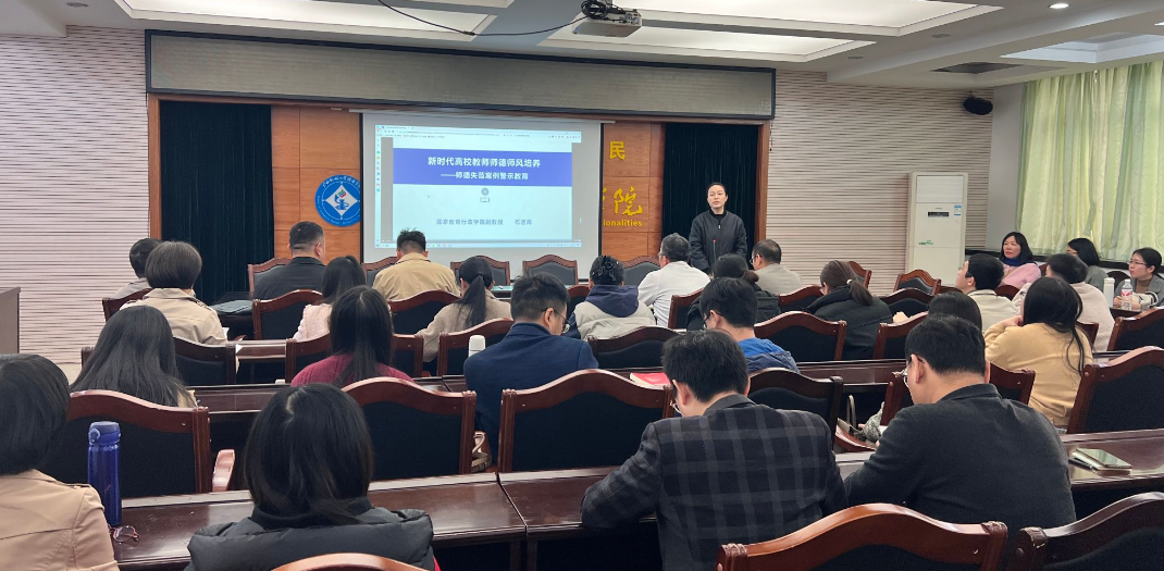 3月18日下午,我院在格物楼206会议室召开师德师风专项培训会,学院全体教职工参会。