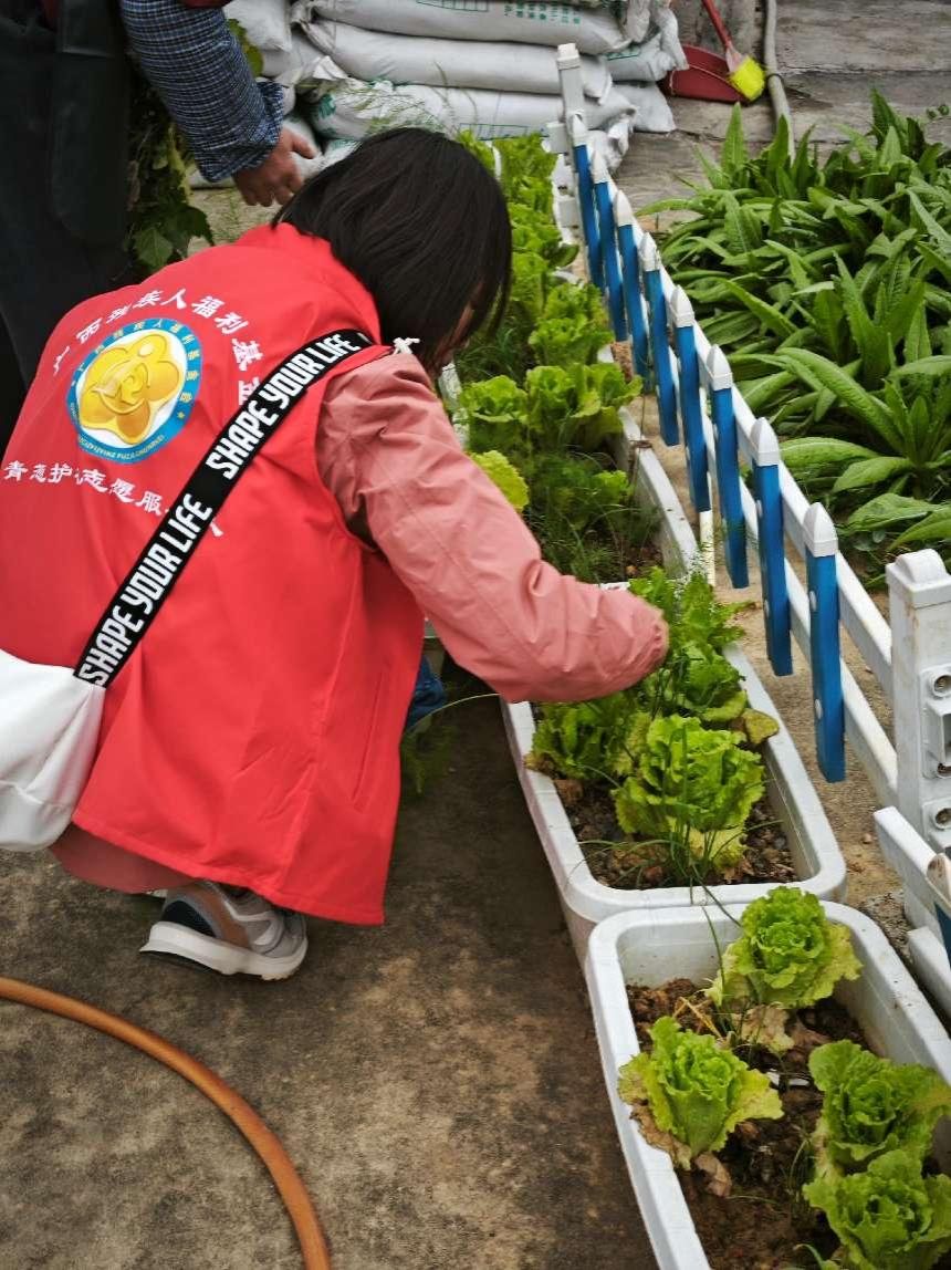 (志愿服务活动参与者帮特教空中花园植物除草)