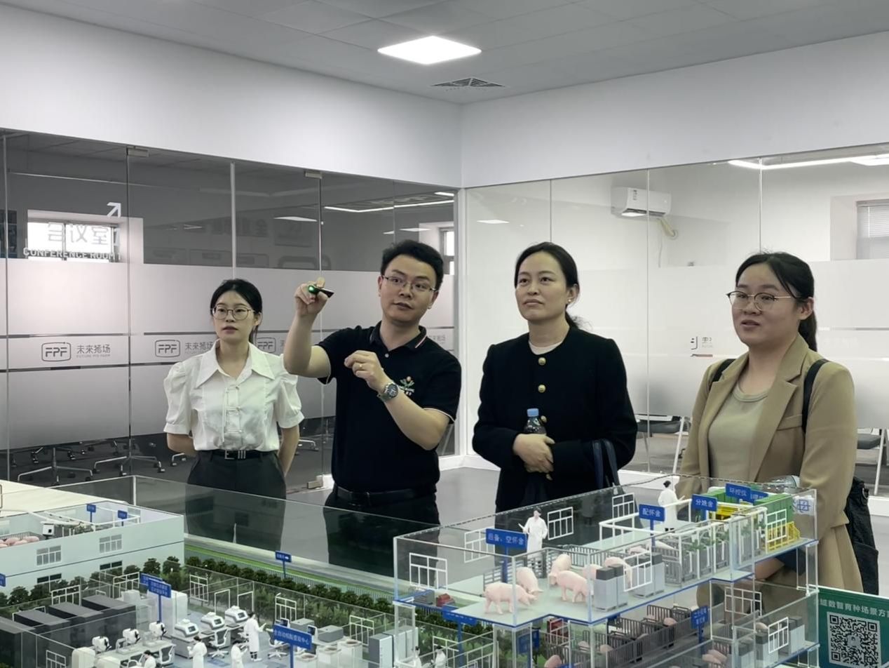 活动伊始,在扬翔股份第一党支部副书记、招聘经理龙伟坚的陪同下,学院代表参观了企业FPF(Future Pig Farming)智能养殖体验中心,深入了解扬翔股份在数字化养猪、智能农业等领域的创新成果。